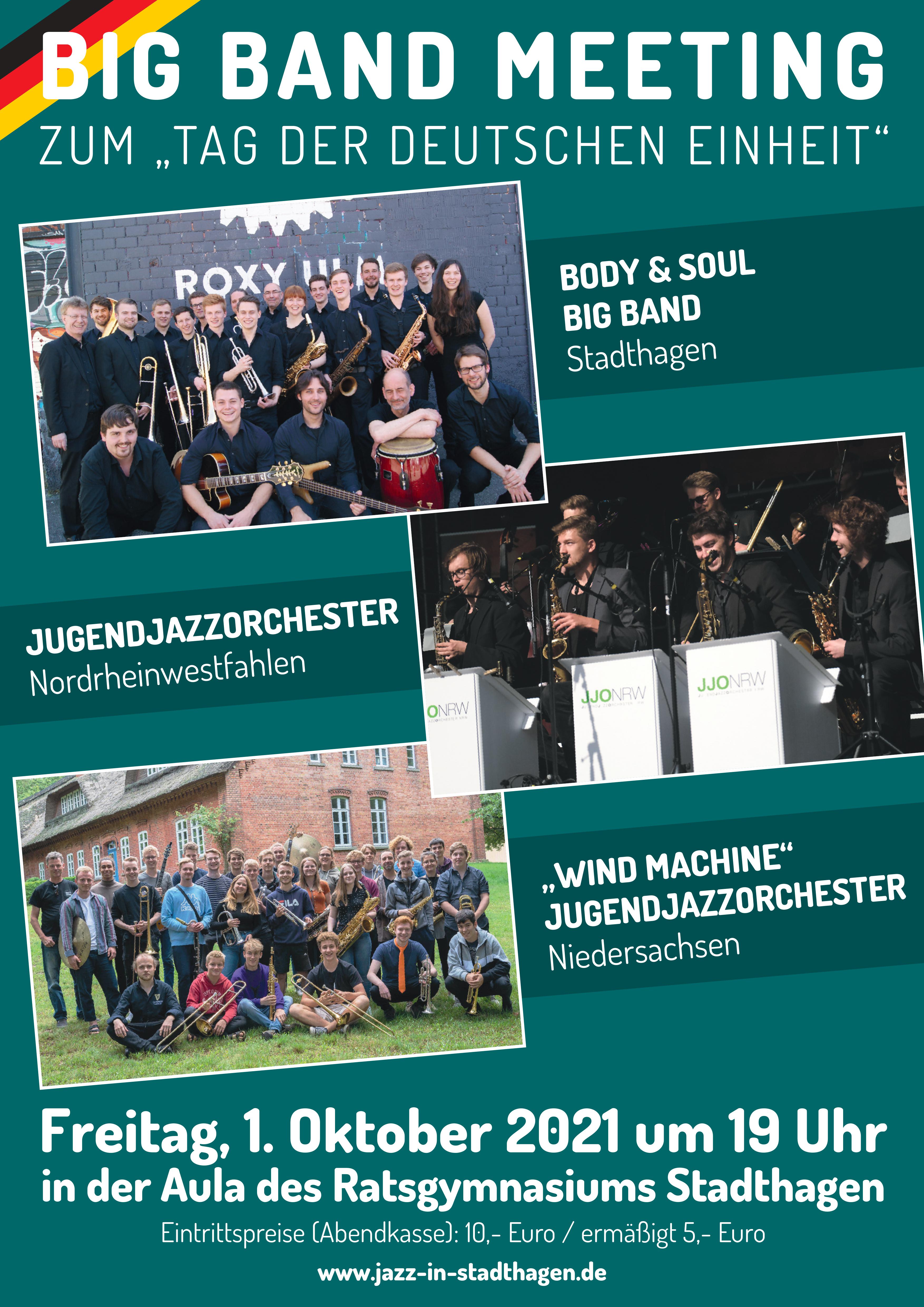 Nachdem nun schon das achte landesweite Big Band Meeting in Stadthagen ansteht, lässt sich ein gewisser Kulteffekt dieser Veranstaltung unter den jazzbegeisterten Jugendlichen nicht leugnen. Die sieben Niedersächsischen Big Band-Meetings 2003, 2005, 2007, 2009, 2011, 2013 und 2015 u.a. mit der NDR Big Band im Schaumburger Land zeigten, wie begeistert Jugendliche aus ganz Niedersachsen Jazz, Rock, Samba und Funk in einer Big Band spielen, sich gegenseitig zuhören können und darauf brennen, etwas Neues gemeinsam zu kreieren. Durch die hervorragend gelegene Unterkunft auf dem Bückeberg im JBF-Centrum wird der Austausch unter den Teilnehmern nochmals verstärkt. Konzerte und Workshops prägen das Treffen der jungen Jazzensembles.