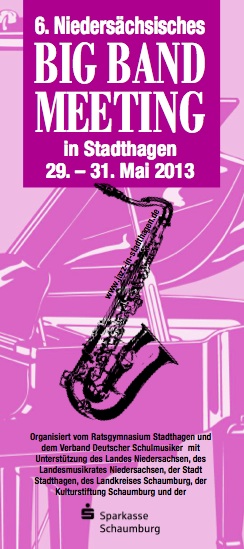 Für die großzügige finanzielle Unterstützung danke ich der Sparkasse Schaumburg, ohne die das 6. Big Band Meeting in Stadthagen in dieser Form nicht hätte stattfinden können. Dass es gelingen konnte, ein Zusammentreffen der Schulbands mit einer professionellen Spitzenband wie der NDR Bigband zu realisieren, ist sicherlich ein ganz besonderer Höhepunkt der Veranstaltung. Ich wünsche allen Teilnehmerinnen und Teilnehmern viel Freude beim gemeinsamen Musizieren und den anerkennenden, dankbaren Applaus aller Gäste!